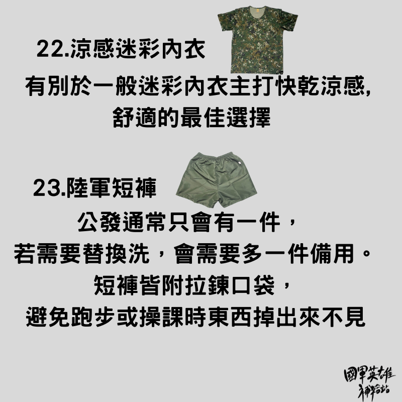 🔸陸軍短褲一件: 跟公發的不同,我們的新型運動短褲有貼心的製作拉鍊!讓你好放你的小東西 不用擔心跑步掉出來 (冬季可補價差換成長褲)