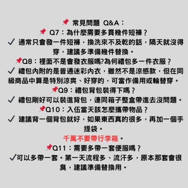 此禮包適合給當兵前完全沒準備的你徬徨無助不知道要帶些什麼樣東西在也不用瘋狂的爬文查資料